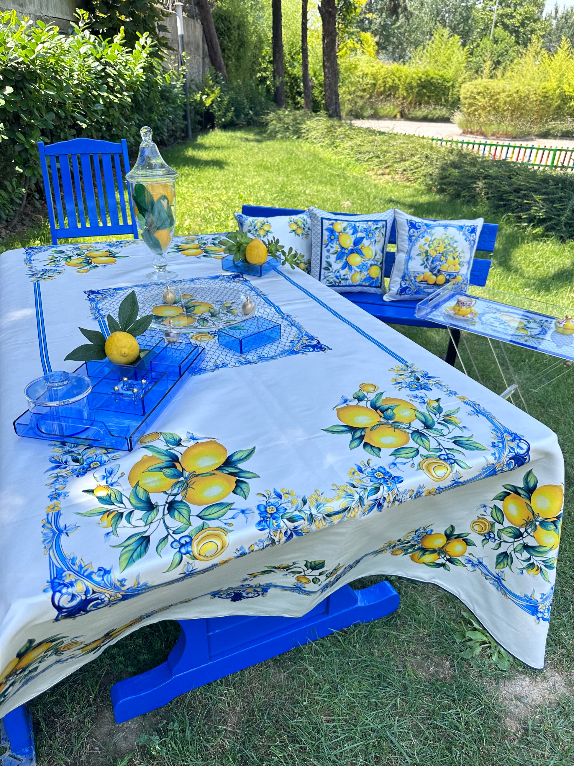 Canlı renkleri ve dayanıklı yapısıyla uzun yıllar kullanabileceğiniz Limon Desenli Masa örtüsü. Polyester keten kumaşı, leke tutmaz özelliğiyle pratik bir kullanım sunarken, çabuk kuruyan ve ütü gerektirmeyen yapısıyla da kolaylık sağlar.